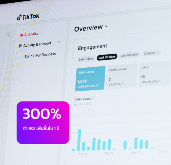 ติดตามผลการดำเนินงานของแคมเปญอย่างใกล้ชิดด้วยเครื่องมือวิเคราะห์ข้อมูลต่าง ๆ ของ TikTok Ads Manager เพื่อหาแนวทางในการปรับปรุงและเพิ่มประสิทธิภาพแคมเปญให้กับธุรกิจของคุณอย่างต่อเนื่อง